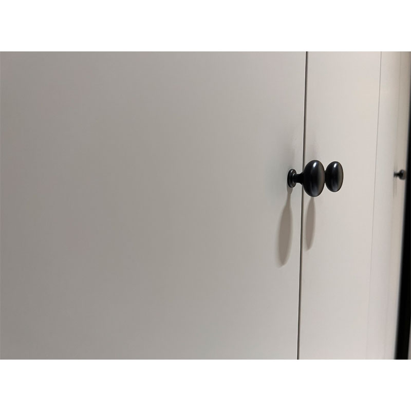 मौसम के बाहर के कपड़े, कोट और बिस्तर सभी को बंद कोठरियों में रखा जा सकता है। छोटे काले गोलाकार हैंडल मनमोहक हैं और अलमारी को कुछ रंग देते हैं।