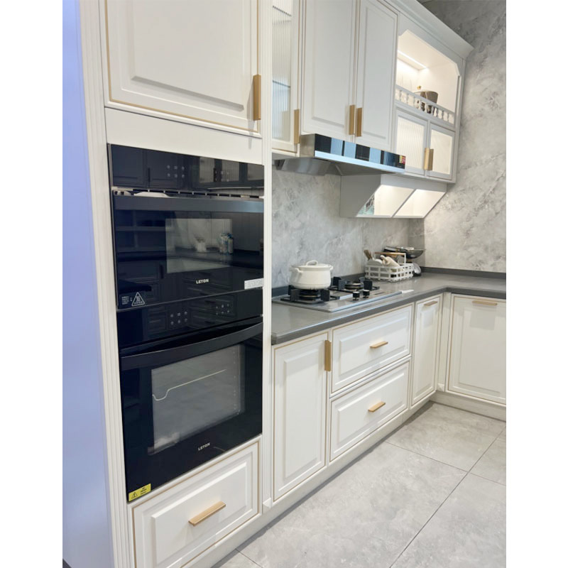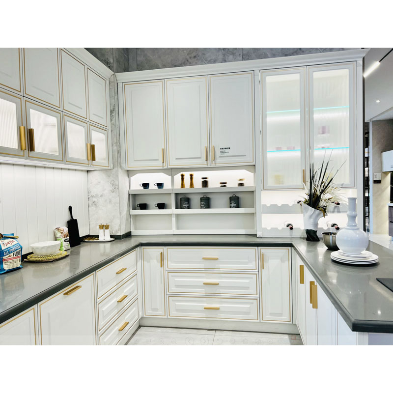 सफेद रसोई अलमारियाँ भी आपके घर की सजावट शैली के साथ विलय करना बहुत आसान है। सिनोआ सफेद पीवीसी रसोई अलमारियाँ रसोई अलमारियाँ दरवाजे के एक चौकोर आकार के साथ। सफेद रसोई अलमारियाँ दरवाजे एक आधुनिक और शास्त्रीय पारंपरिक रसोई के लिए न्यूनतम रसोई अलमारियाँ बनाने के लिए रसोई अलमारियाँ के सुनहरे रंग से मेल खाते हैं।